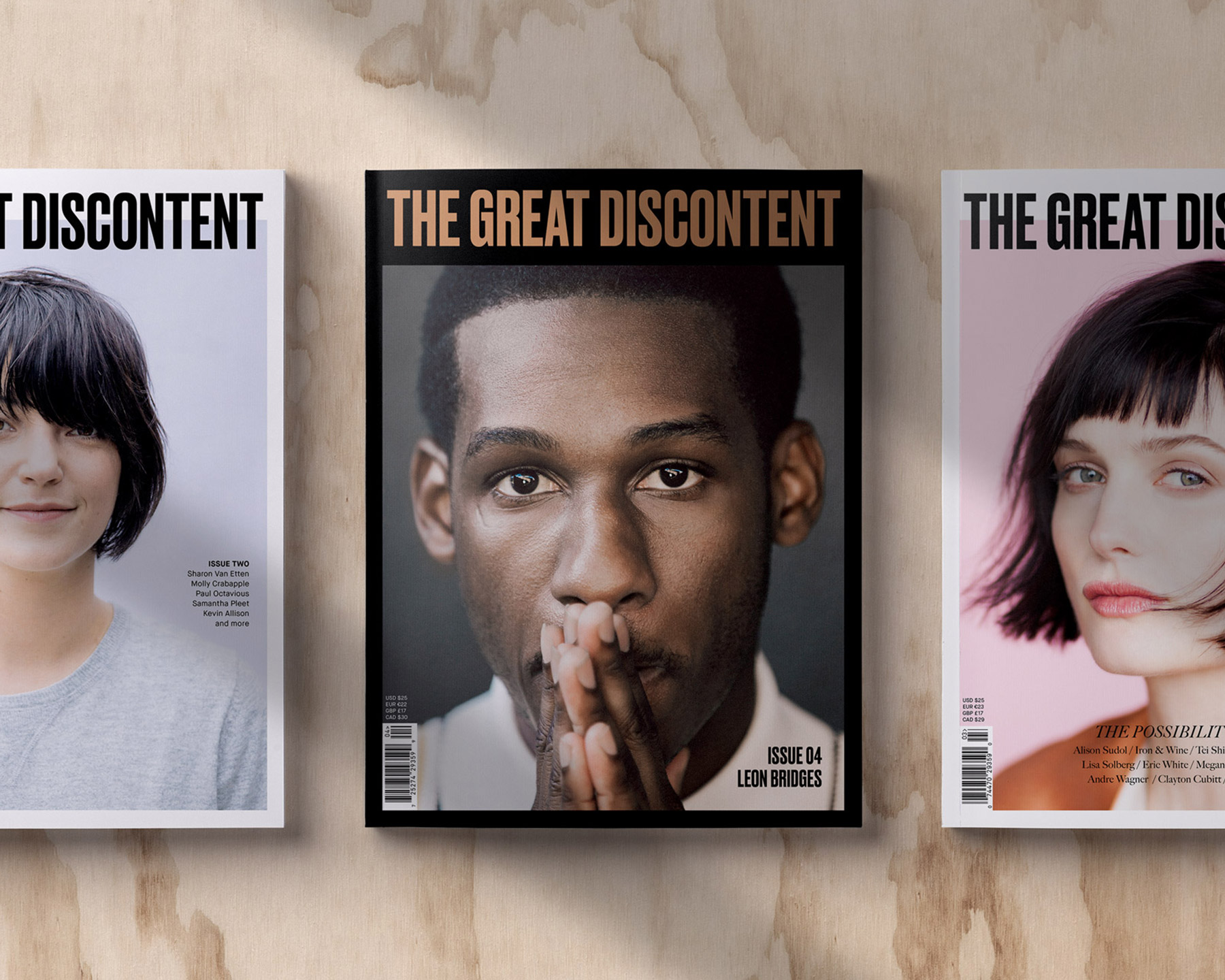 The Great Discontent is a magazine and interview series spotlighting artists, makers, and culture-shapers through longform storytelling. As cofounder and creative director, I led the brand, web, and print design—shaping its honest, artful voice across 300+ interviews.